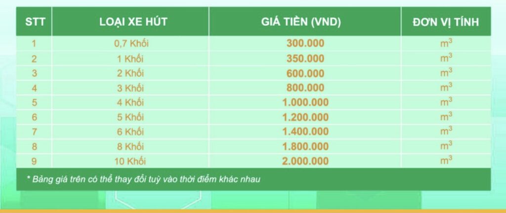 4. Bảng giá hút bể phốt tại KCN VSIP Bắc Ninh