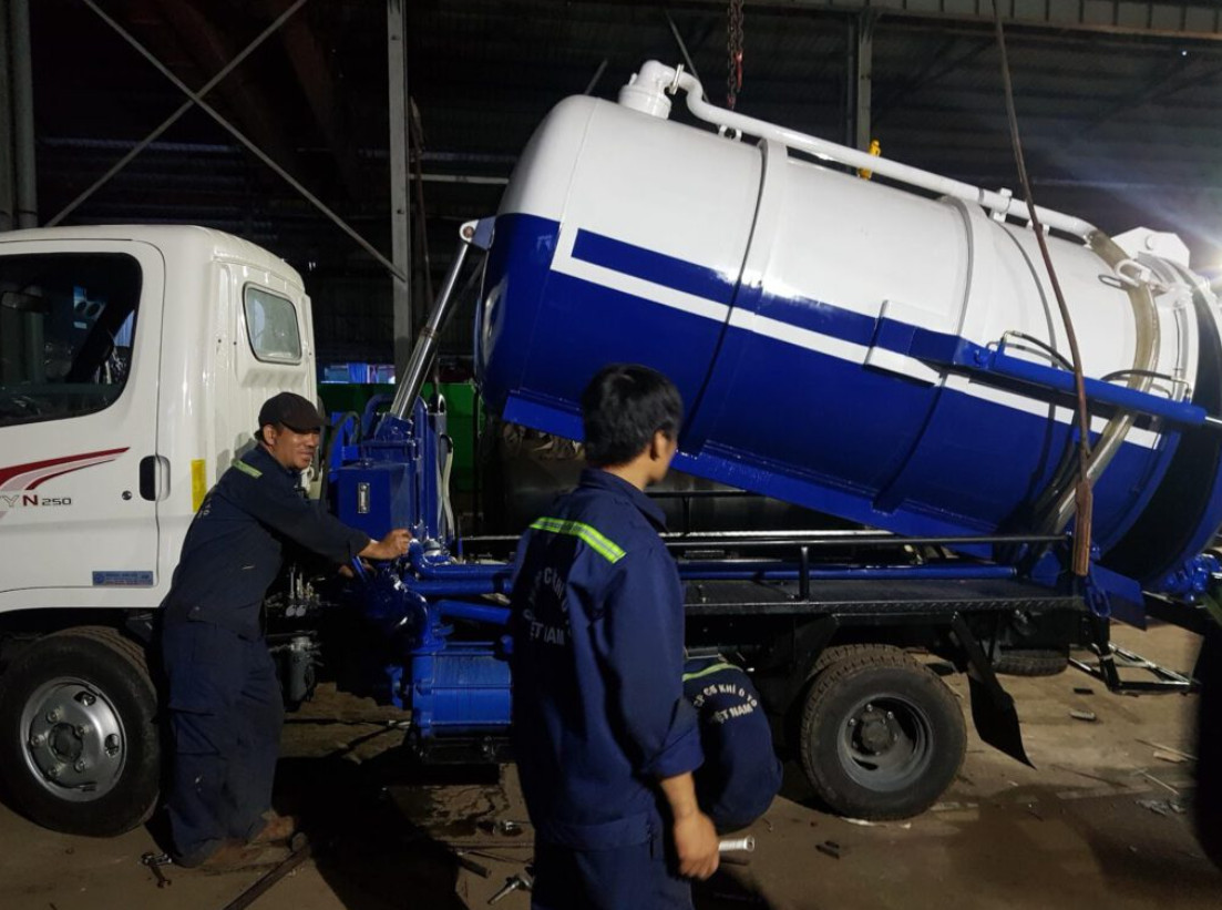- Bước 3: Chuẩn bị xe hút hầm cầu chuyên dụng có dung tích phù hợp cùng với các dụng cụ cần thiết như ống hút, bơm và các thiết bị bảo hộ lao động để quá trình hút nhanh chóng, an toàn, sạch sẽ.